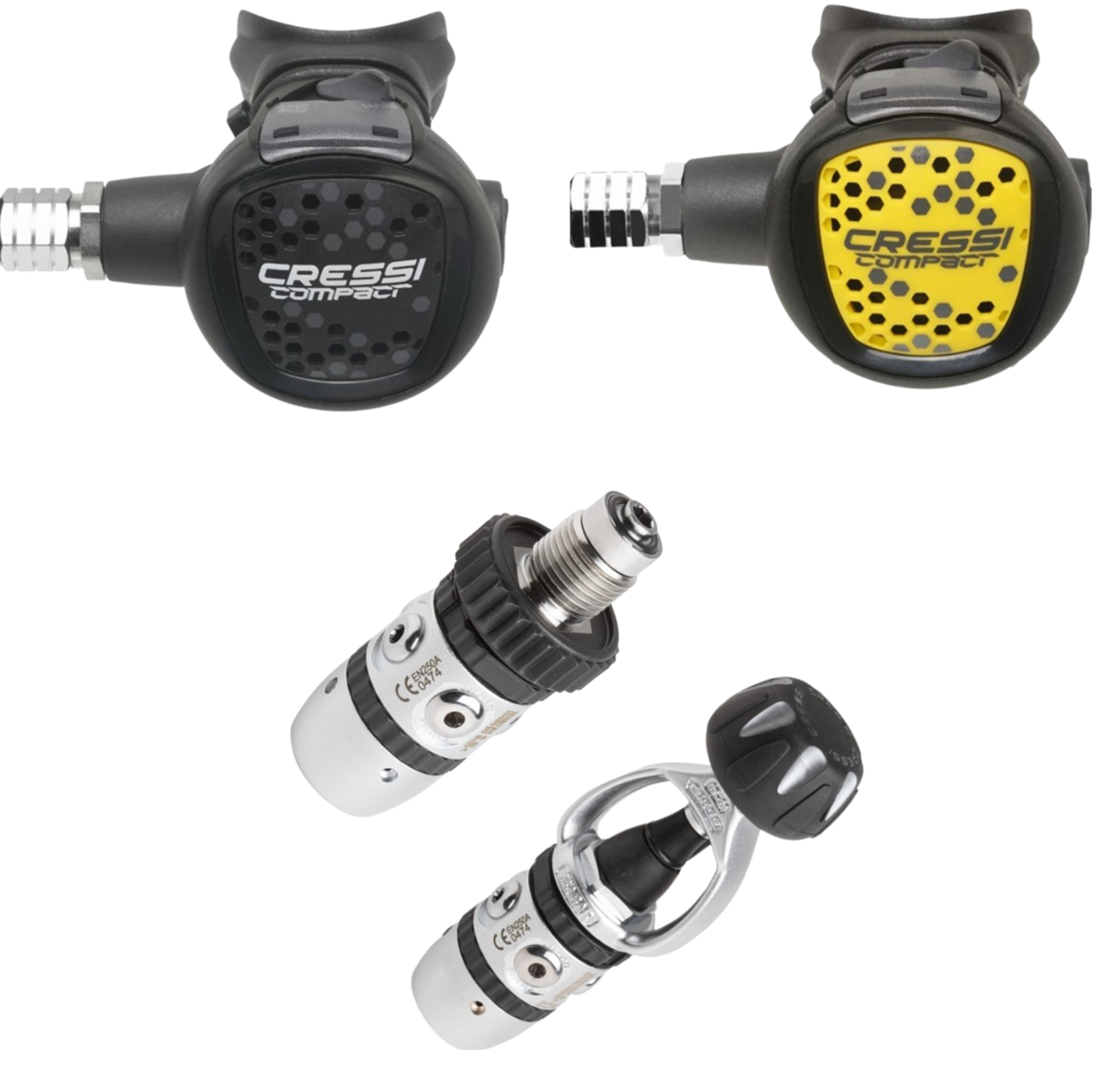 De automaten set Cressi AC2 / Compact met compact octopus is een ideale ademautomaat voor beginners en reizigers tegen een betaalbare prijs.