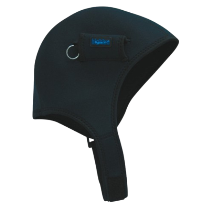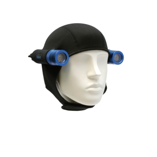 dE volledige neopreen kap biedt plaats aan maximaal twee (2) Bigblue-lampen in stevige hoezen aan weerszijden van het hoofd.