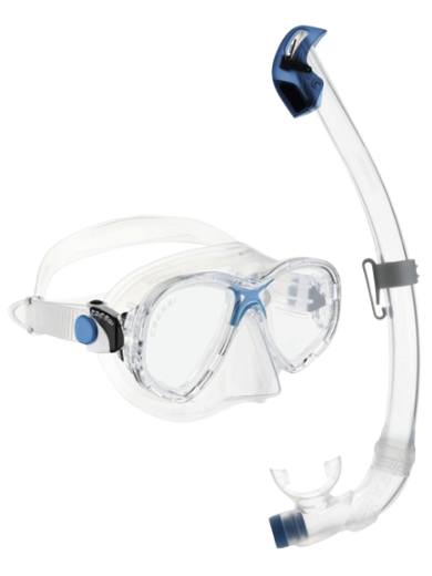 Het Marea Junior masker met 2 lenzen is bijzonder geschikt is voor duiken en snorkelen. Het heeft dubbele lenzen van gehard glas, een dubbele gevederde rand die zich aanpast aan de meeste gezichten en een klein binnenvolume dat perfect is voor diep onder water. De Marea Junior is gemaakt van 100% helder, hoogwaardig, afdichtend zacht siliconenrubber dat buitengewoon en ongekend comfort en pasvorm biedt. Het Marea Junior-masker is ontworpen voor jongere duikers en vrouwelijke duikers en biedt een uitzonderlijk breed gezichtsveld. Het masker is uitgerust met Cressi’s micrometrische, eenvoudig verstelbare gespen en heeft een brede, uit silicone rubber vervaardigde, gesplitste maskerband voor een gelijkmatige drukverdeling, wat zorgt voor een betere pasvorm en meer comfort. Het masker heeft een gemakkelijk bereikbare neusopening voor het met één hand uitvoeren van oorcompensatie.