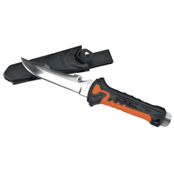 De totale lengte van Seac Rapid is 23 cm. De schede is stijf en maakt het mogelijk om het duikmes aan beide kanten vast te haken.
