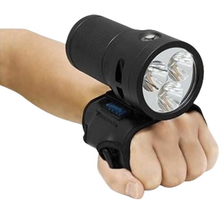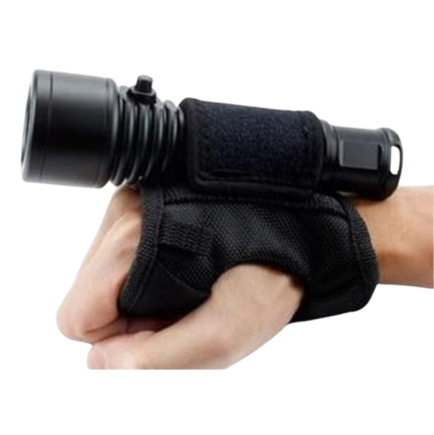 Deze polsband biedt de bewegingsvrijheid die nodig is voor technische duikers en landrotten die graag handsfree gebruik maken van een standaard zaklamp.
