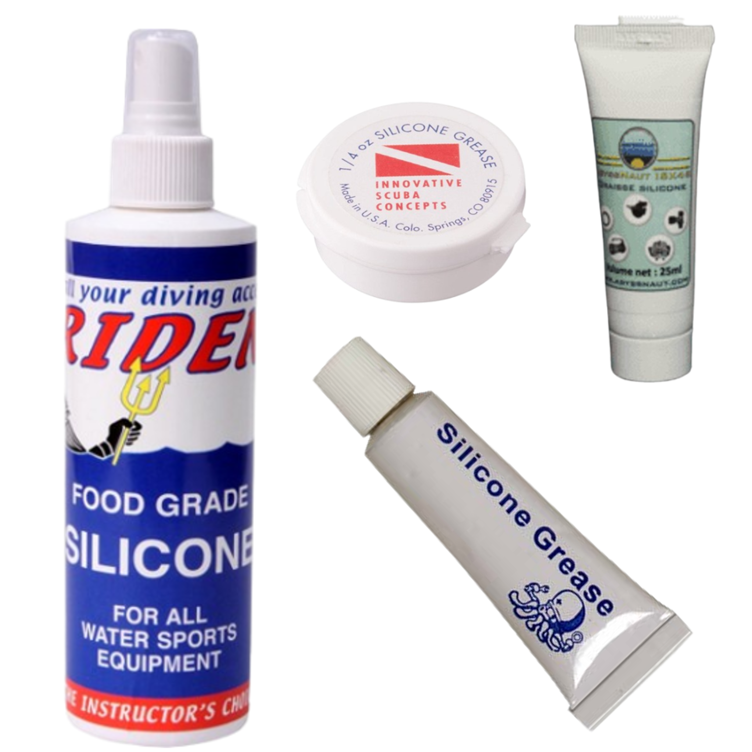 Houd rubber, plastic en metalen onderdelen van duikuitrusting goed gesmeerd met Silicone Grease of spray